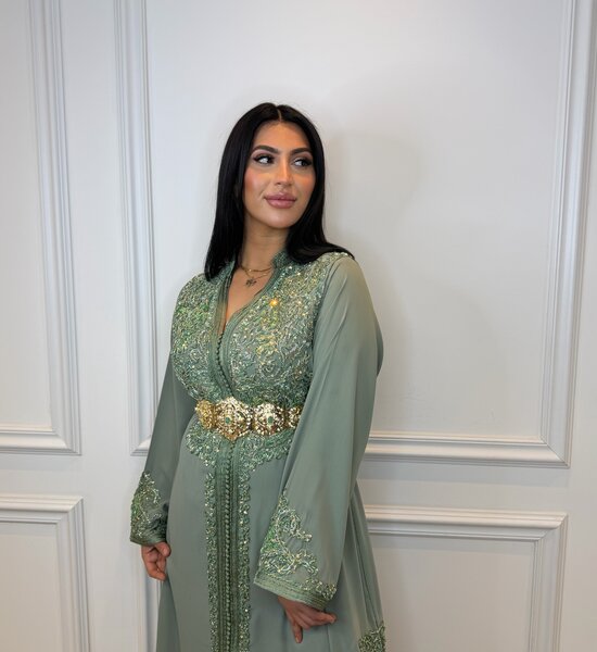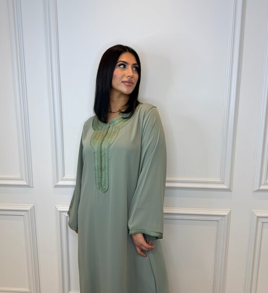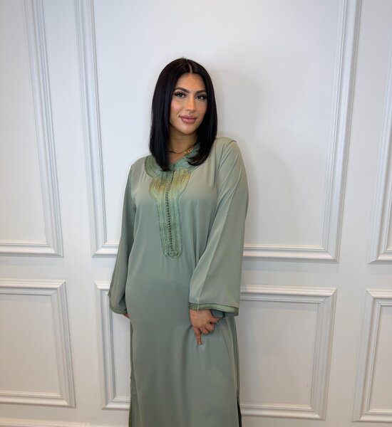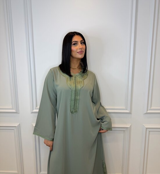 Stijlvolle legergroene Djellaba met subtiele, verfijnde Sfifa afwerking. Het minimalistische ontwerp straalt klasse en tijdloze elegantie uit. Dankzij de soepele pasvorm en rustige uitstraling is deze djellaba perfect voor zowel dagelijkse elegantie als ingetogen feestelijke momenten.